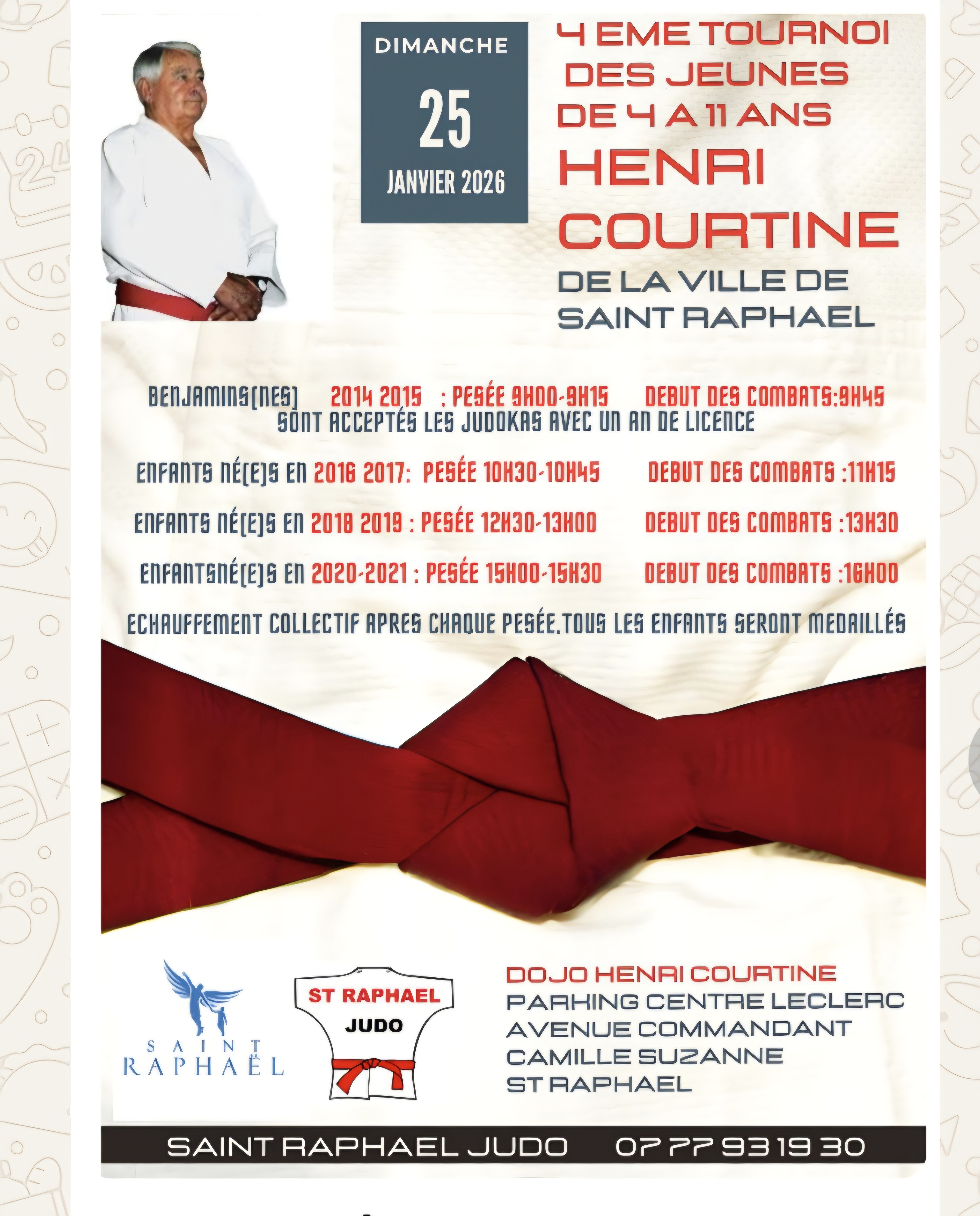 Voici les informations pour une compétition de judo.